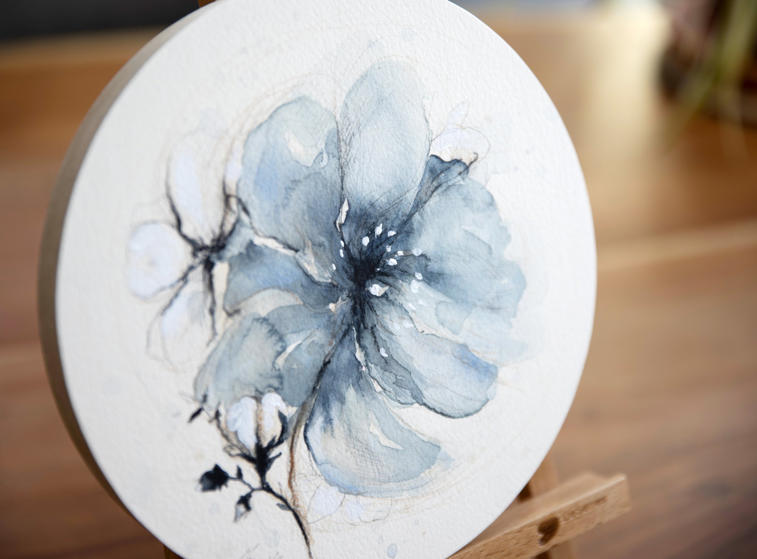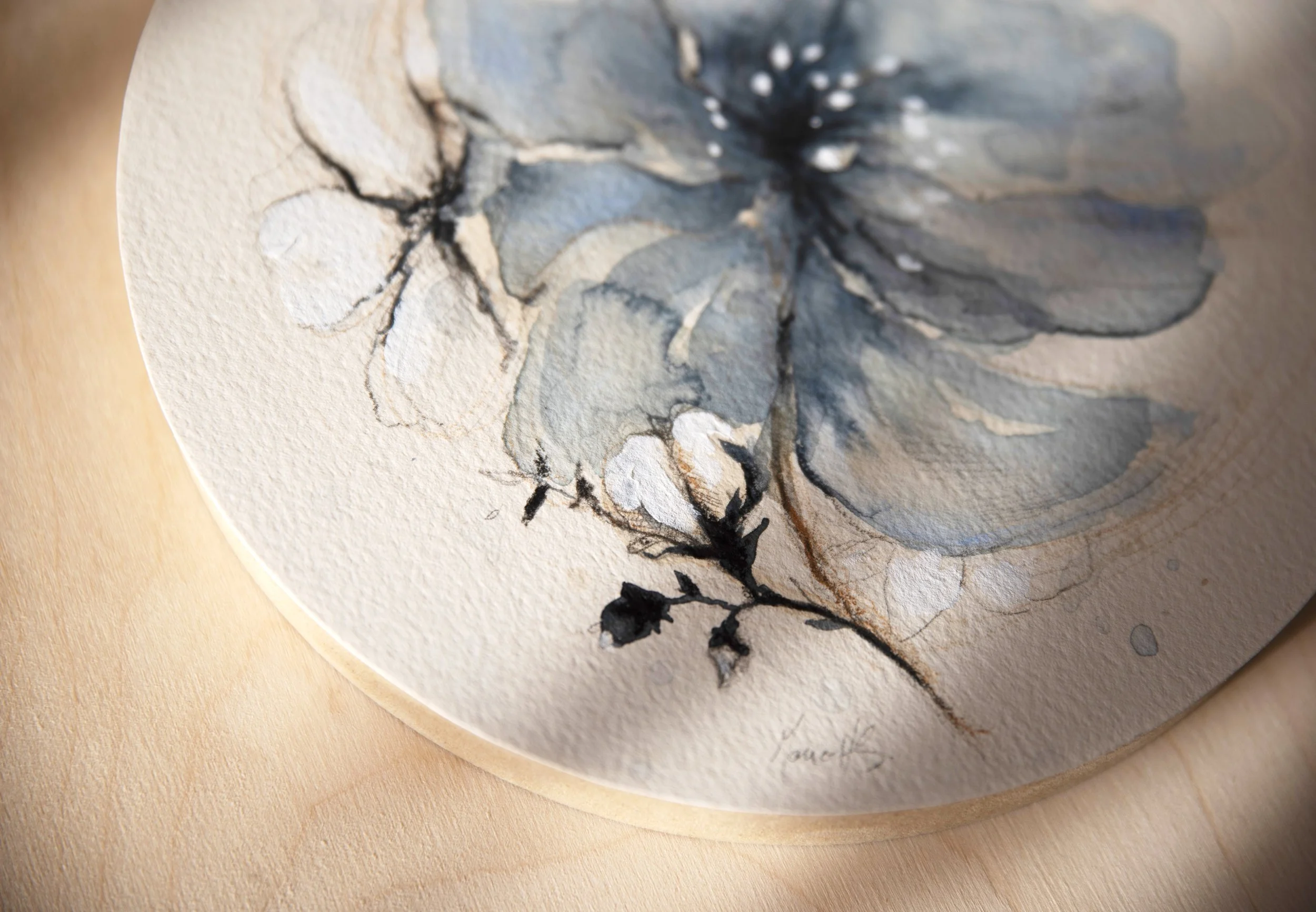 Azure cerisier 1techniques mixtes sur papier aquarelle collée sur panneau de bois - 8 x 8 poucesoeuvre non disponible