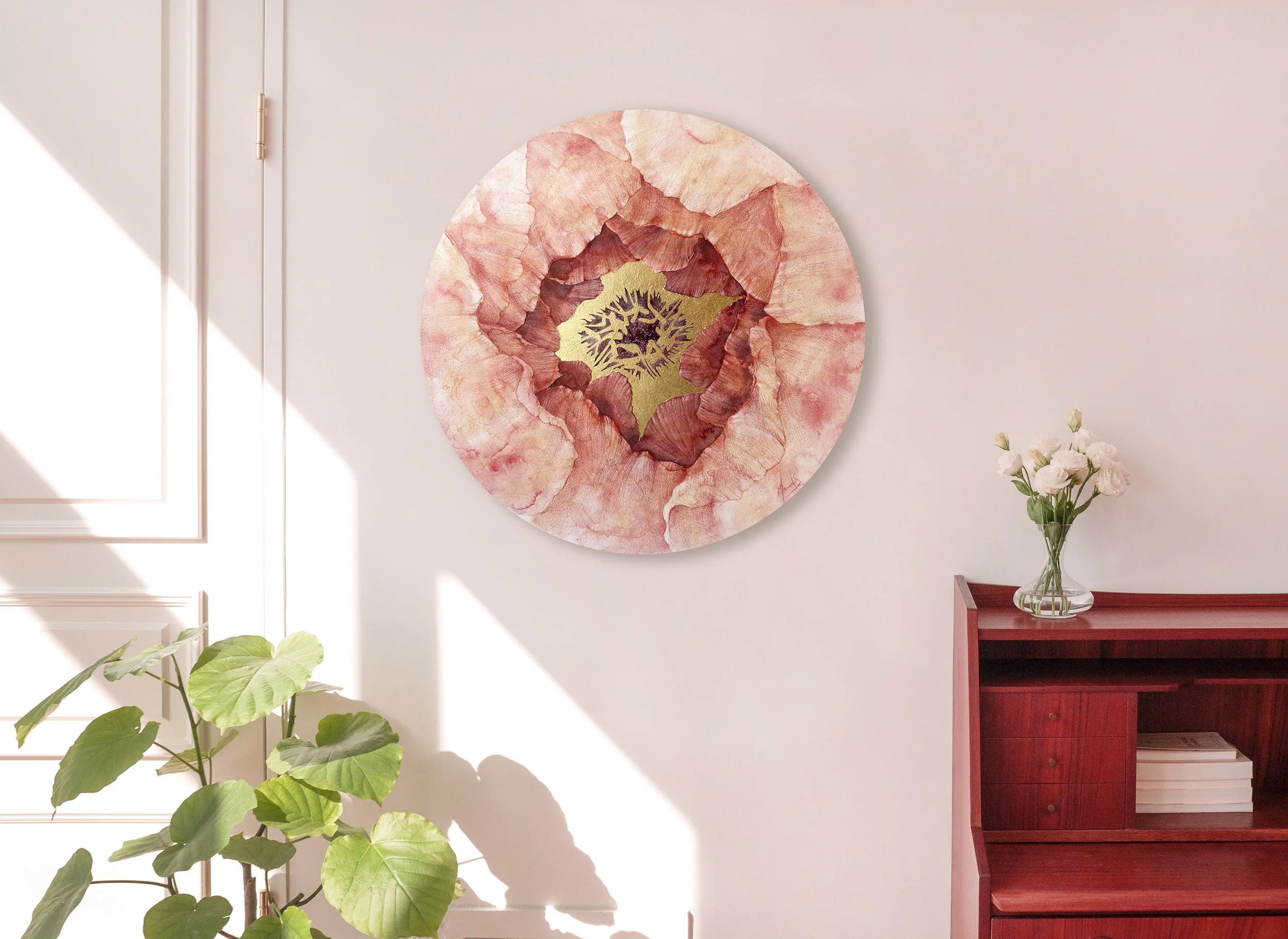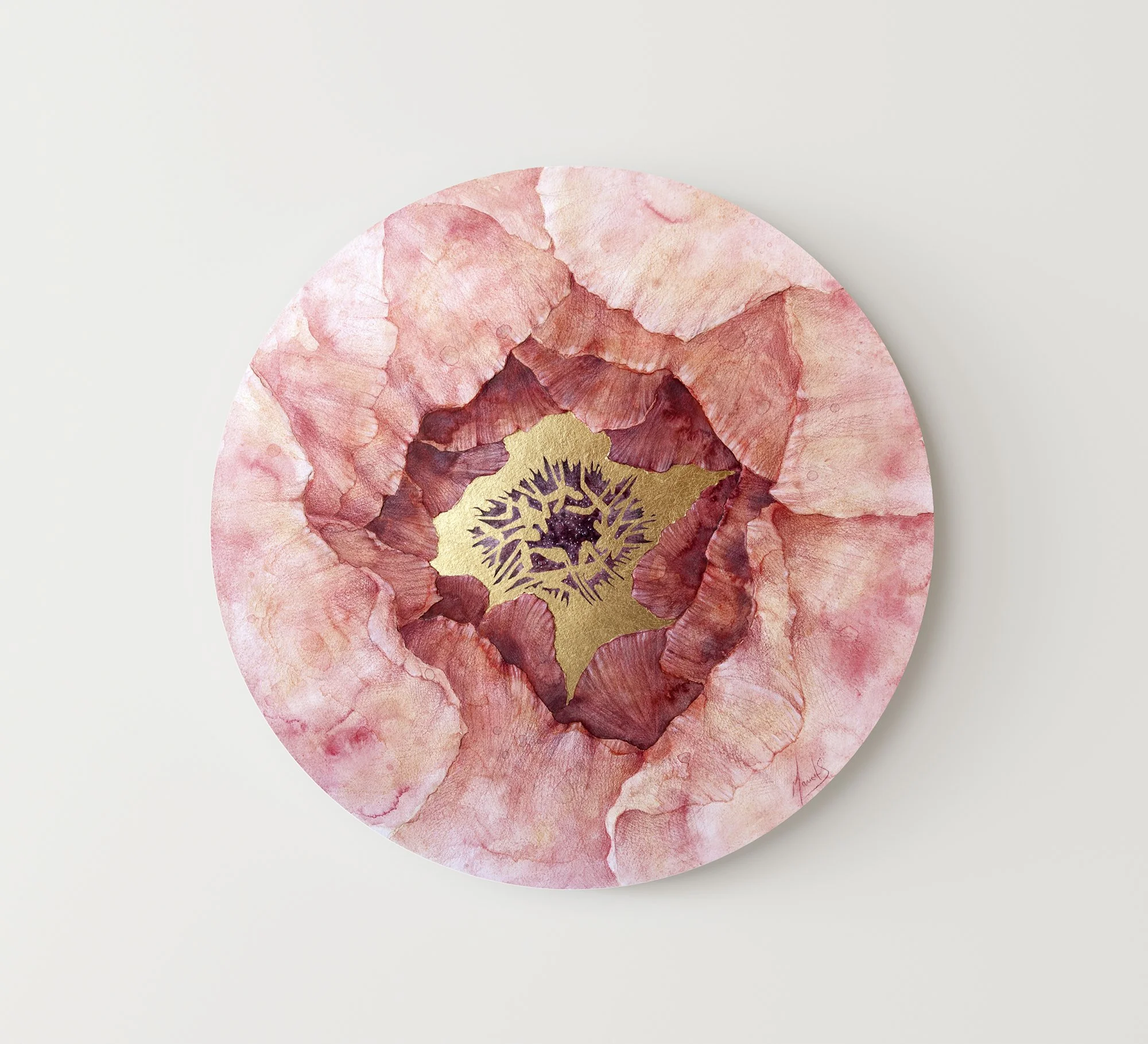 techniques mixtes sur panneau de bois circulaire - 18 x 18 pouces