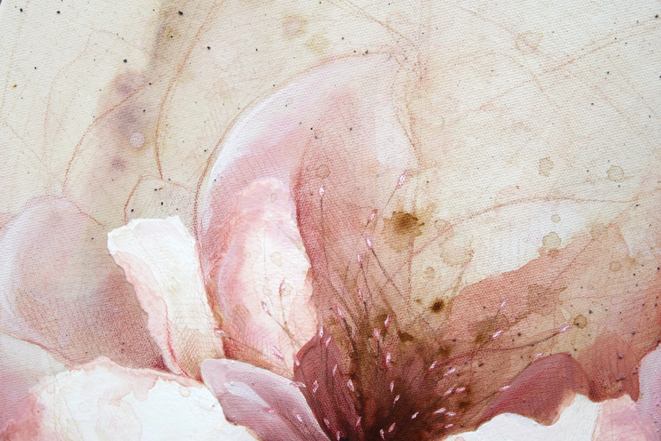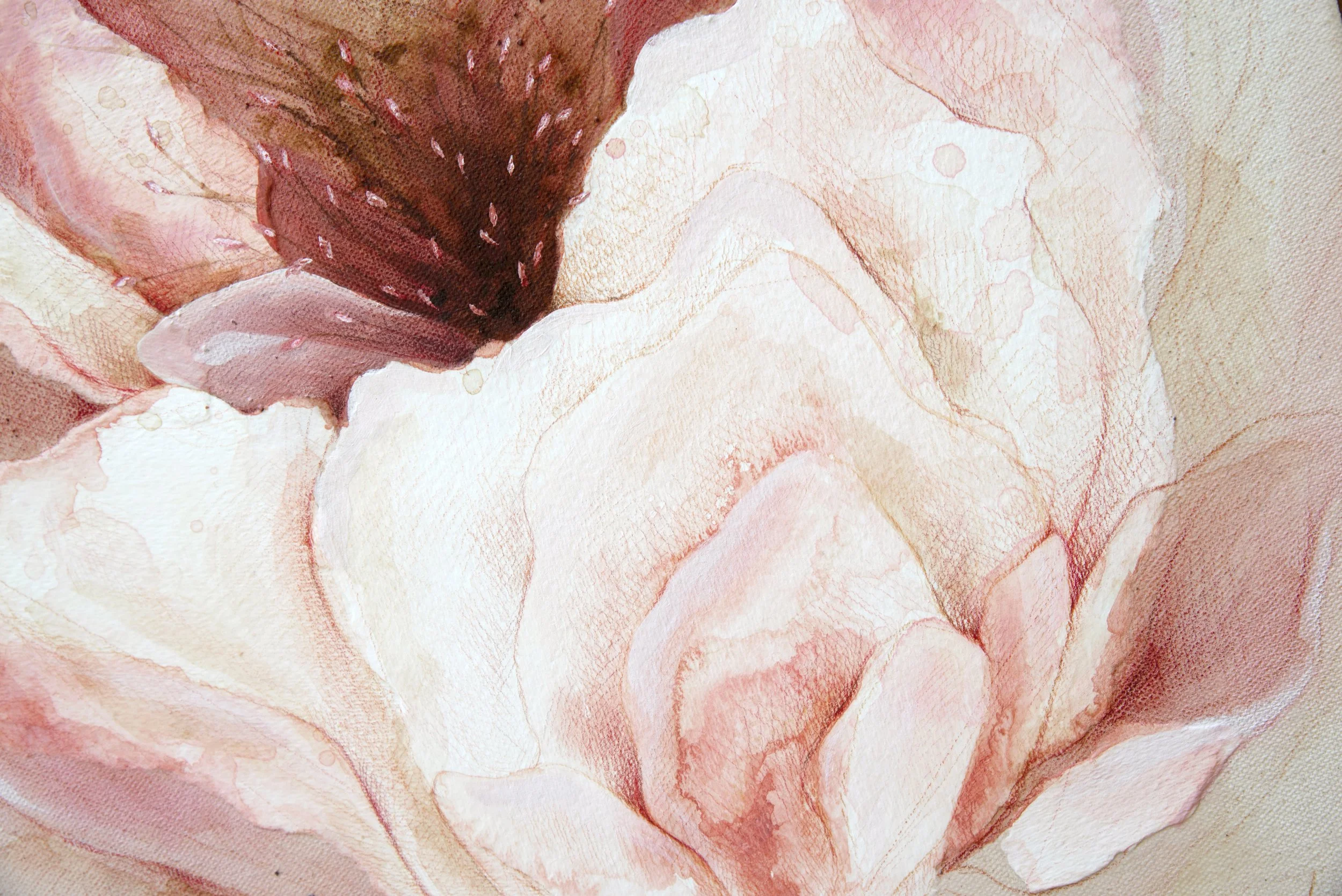 Se laisser guider par ses émotions, une inspiration de plus en plus vive chez moi. Les touches d’abstraction me permettent de projeter sur la toile mes sensations du moment tout en m’inspirant du réalisme de notre magnifique nature. ‘‘S’ouvrir’’, une oeuvre qui raconte l’une des premières étapes pour prendre soin de soi, une oeuvre qui fait du bien.
