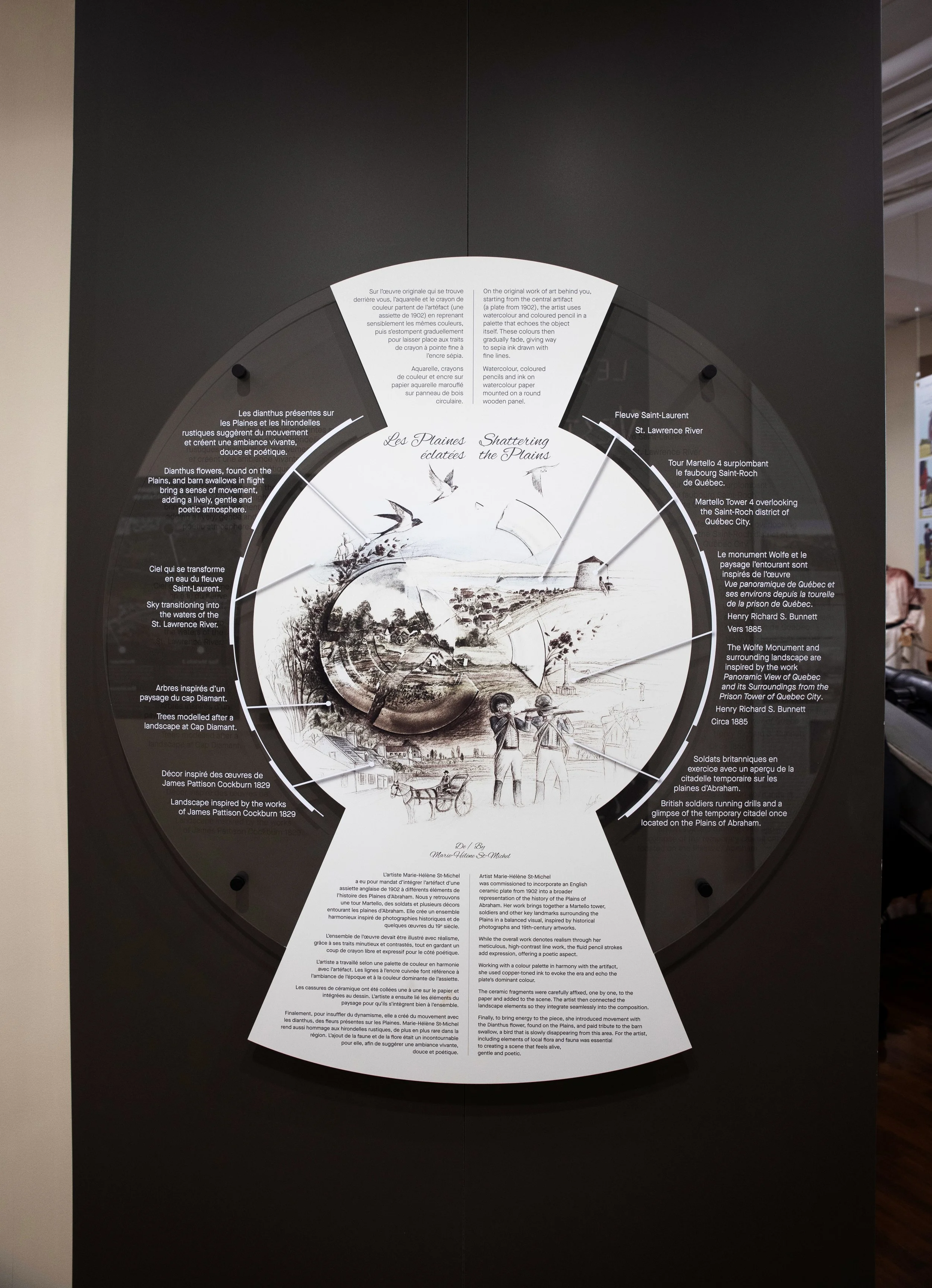 Elle fait maintenant partie de l'exposition permanente "Batailles | 1759-1760". Elle accueille les visiteurs dans la section "Les Vestiges". C'est vraiment un honneur d'avoir une œuvre exposée dans les murs de ce merveilleux Musée du Québec!